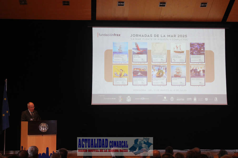 Esta ha sido la primera de las actividades de las Jornadas de la Mar 2025 que llevan por título genérico ‘La mar: fuente de riqueza y conflictos”, organizadas por la Fundación Frax en colaboración con el Ayuntamiento de Benidorm y el Instituto de Historia y Cultura Naval del Ministerio de Defensa.