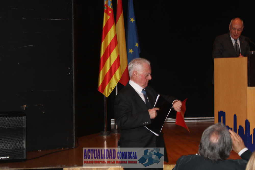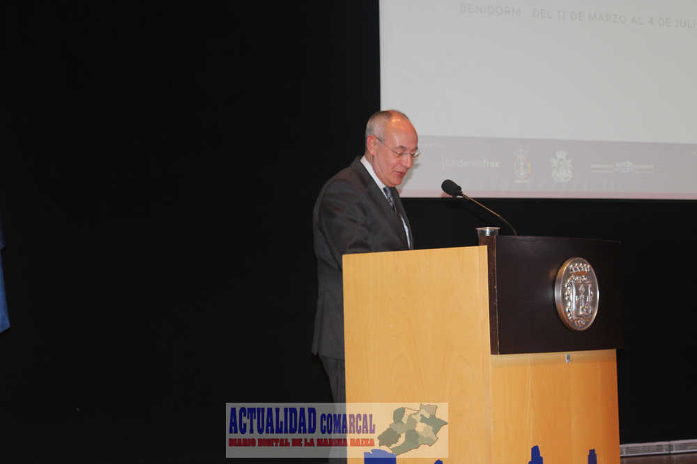 Tras las palabras de Rebollo, el almirante en la reserva recibió la felicitación pública de Victoriano Gilabert y, en nombre de todos los asistentes y del pueblo de Benidorm, de Toni Pérez.