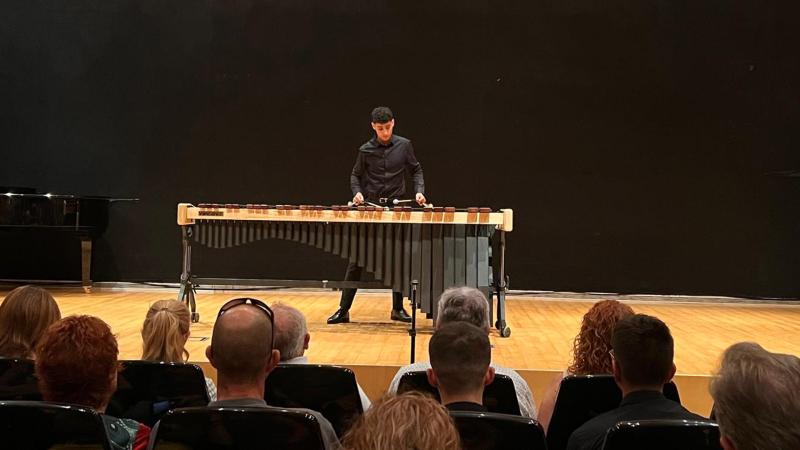 El programa comenzó con la obra ‘Stubernic’ de M. Ford, interpretada por los percusionistas Gabriel Fuster, Eric Rodríguez y Rafael Domenech Ródenas. A continuación fue el turno de la obra ‘Variations on porgy and bess’, de E. Sammut, que corrió a cargo de Saúl Arjona a la marimba. Le siguieron ‘Concierto Op. 76 en sol mayor Allegro Maestoso, de Briot, con Cecilia Carballo al violín; ‘Andante y rondo caprichoso Op. 14 de F. Mendelssohn, con el piano de Cristina Arbona; ‘Concert Piece nº2 Op. 114 de F. Mendelssohn y el clarinete de Eric Polikit y Rubén Martínez.