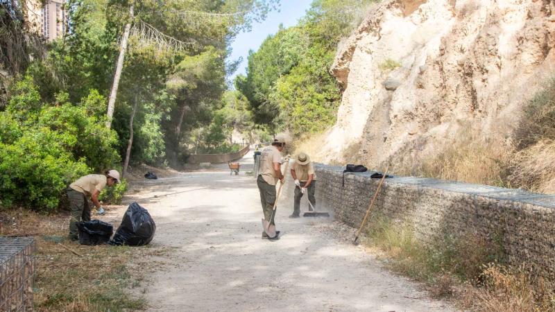 Para desarrollar este Taller de Empleo ‘Benidorm Natura y Esport’, el Consistorio benidormense ha contratado durante doce meses a veinte personas desempleadas con el objetivo de ofrecerles formación encaminada a mejorar empleabilidad, a través de dos ramas formativas diferentes. Diez de estos alumnos participan en la rama de ‘Actividades auxiliares en conservación y mejora de montes’ y ‘Repoblaciones forestales y tratamientos silvícolas’, mientras que los diez restantes lo hacen en las especialidades de ‘Operaciones auxiliares en la organización de actividades y funcionamiento de instalaciones deportivas’ y ‘Guía por itinerarios en bicicleta’.