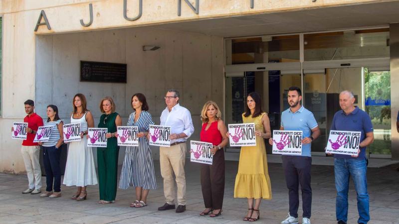 El Ayuntamiento de Benidorm ha guardado este jueves un minuto de silencio a las doce del mediodía para condenar el último crimen machista confirmado por la Delegación del Gobierno contra la Violencia de Género en nuestro país y que ha ocurrido en la provincia de Badajoz. La concentración silenciosa ha tenido lugar en la puerta del Ayuntamiento y ha estado encabezada por el alcalde de la ciudad, Toni Pérez, junto a otros miembros de la Corporación local.