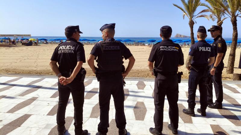 Dos agentes de la Police Nationale de Francia patrullarán las calles de Benidorm integrados junto a efectivos de la Policía Nacional, para reforzar la ‘Operación Verano’ durante estos días de agosto y, a su vez, para colaborar con la Policía Local dentro de las labores de seguridad ciudadana que realizan ambos cuerpos policiales en la ciudad. Los agentes han sido presentados este martes por el comisario jefe de Benidorm, Luis Manuel Sánchez, quien ha explicado que esta colaboración forma parte del proyecto de ‘Comisarías Europeas’ en el que participa el Cuerpo Nacional de Policía.
