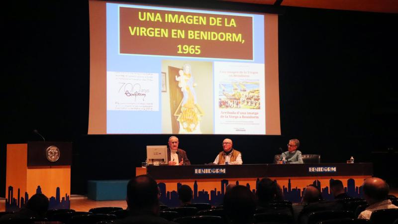 El Salón de Actos del Ayuntamiento de Benidorm acogió la tarde de este jueves la presentación del nuevo libro que recopila en un mismo volumen las dos obras que el historiador Pere Maria Orts i Bosch escribió en su día sobre la Virgen del Sufragio, patrona de Benidorm: ‘Una imagen de la Virgen en Benidorm’ (1965) y ‘Arribada d’una imatge de la Verge a Benidorm’ (1972).