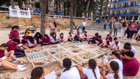 Uno de estos talleres ha tenido lugar en la misma Playa de Poniente de Benidorm, a la altura del Centro Cultural Marítimo. Es el taller ‘Arqueólogo por un Día’. Una iniciativa que, durante hora y media, ha ofrecido a los estudiantes la oportunidad de experimentar el trabajo de un profesional mediante la simulación de una excavación.