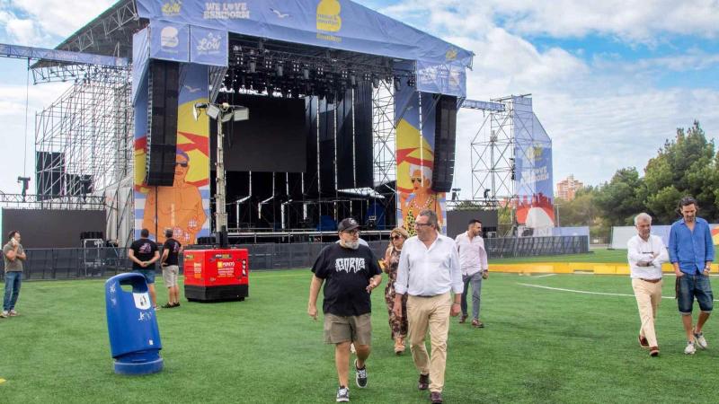 Ya está todo listo en la Ciudad Deportiva Guillermo Amor para que esta tarde arranque una nueva edición del Low Festival, un evento que alcanza este año su decimoquinta edición y que prevé congregar a 23.000 personas diarias a lo largo de sus tres jornadas. El alcalde de Benidorm, Toni Pérez, ha visitado este viernes el recinto en el que se desarrollará el festival acompañado del concejal de Eventos y Seguridad Ciudadana, Jesús Carrobles; el responsable de la promotora Producciones Baltimore, José Piñero; y otros representantes municipales y de la organización, para conocer algunos detalles de esta edición, que se recordará como la edición en la que The Pet Shop Boys hicieron parada en la ciudad con su gira de grandes éxitos ‘Dreamworld: The Greatest Hits Live’.