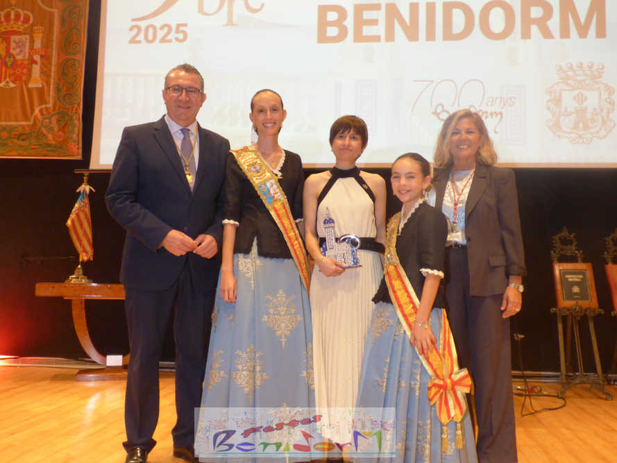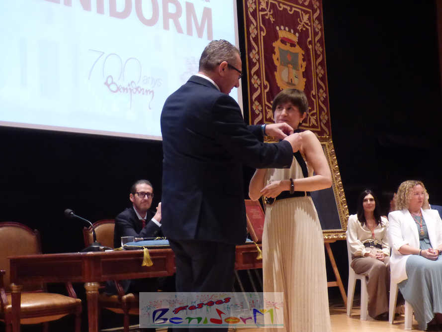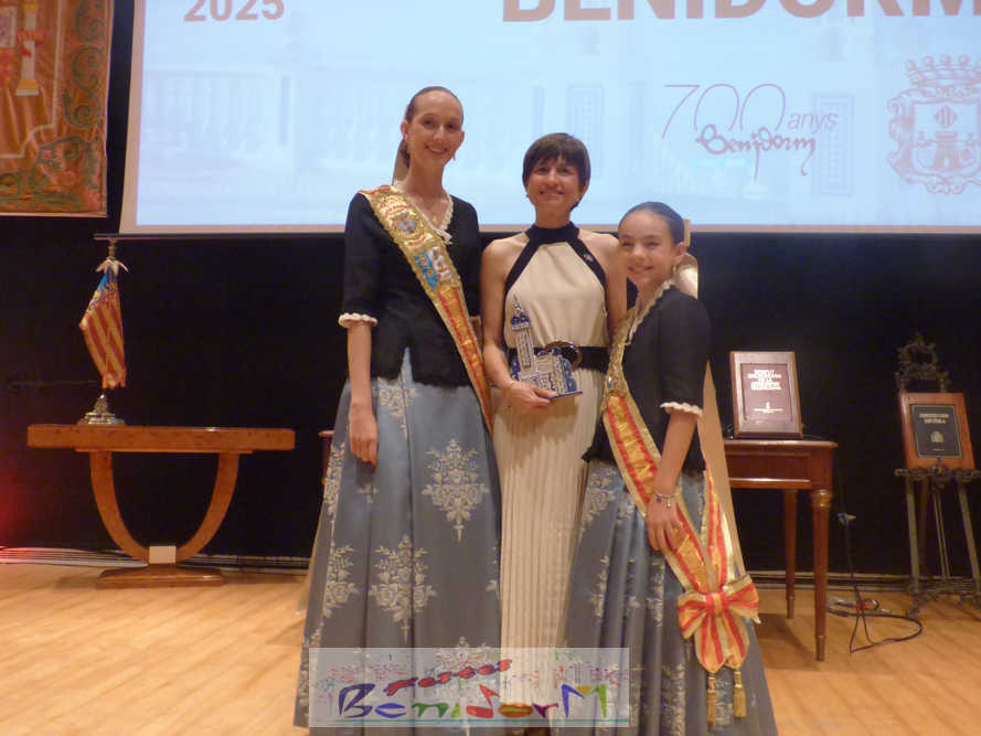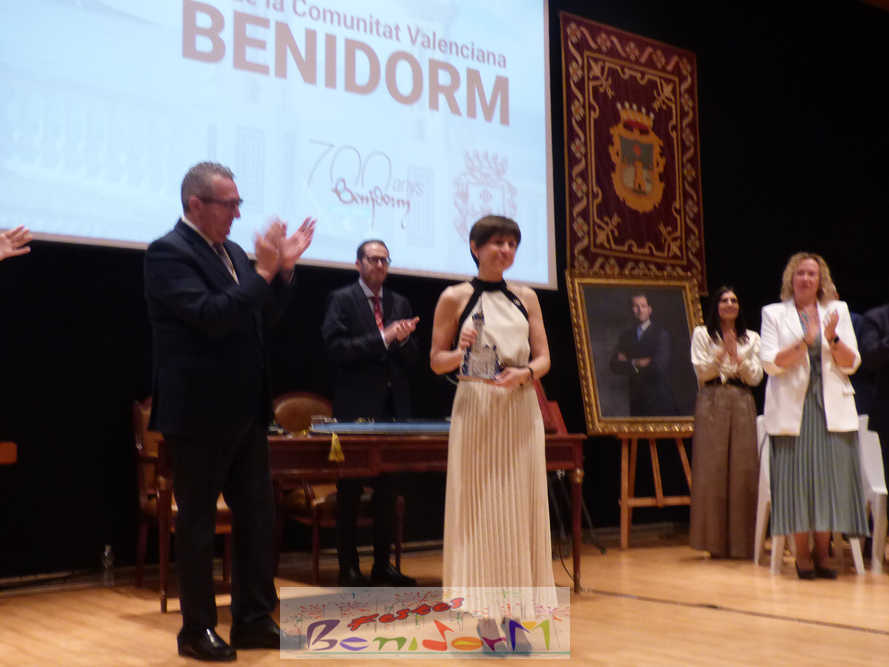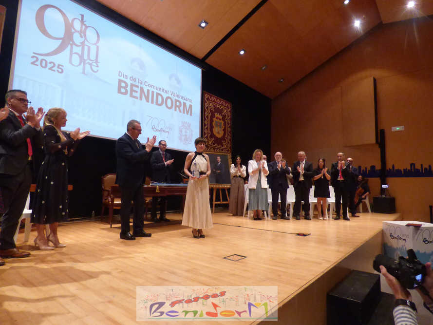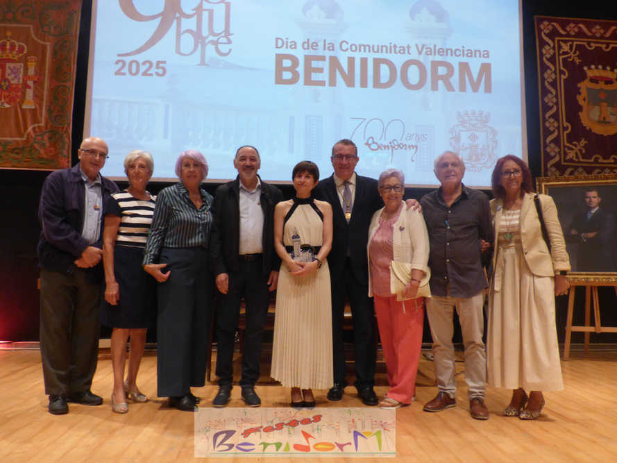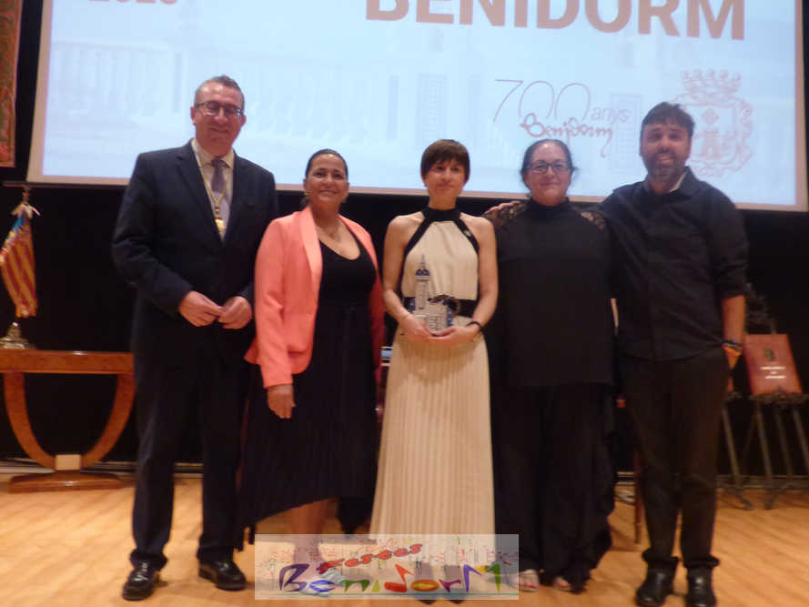 El acto, no obstante, se ha iniciado con la entrega de la distinción ‘Ciutat de Benidorm’ a María José Lozano Pérez, una distinción con la que se reconoce a las personas e instituciones que son o han sido “referentes en su labor diaria” por sus aportaciones a “la cultura local y valenciana”. A María José Lozano se le reconocen “los destacados méritos culturales” a lo largo de su trayectoria como docente de la especialidad de Informática en Secundaria, asesora del CEFIRE –Centro de Formación, Innovación y Recursos Educativos– de La Nucía y como persona muy vinculada a numerosas actividades relacionadas con el ámbito cultural en nuestra ciudad.