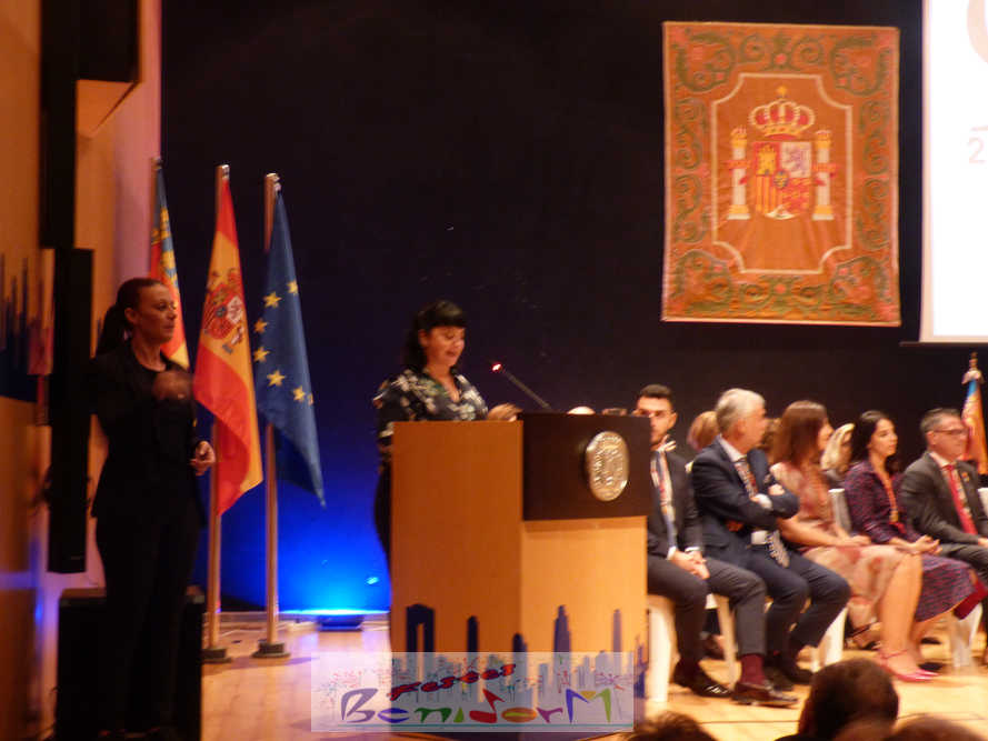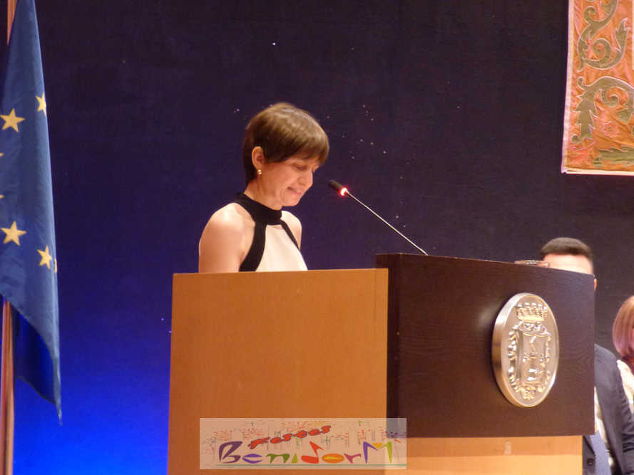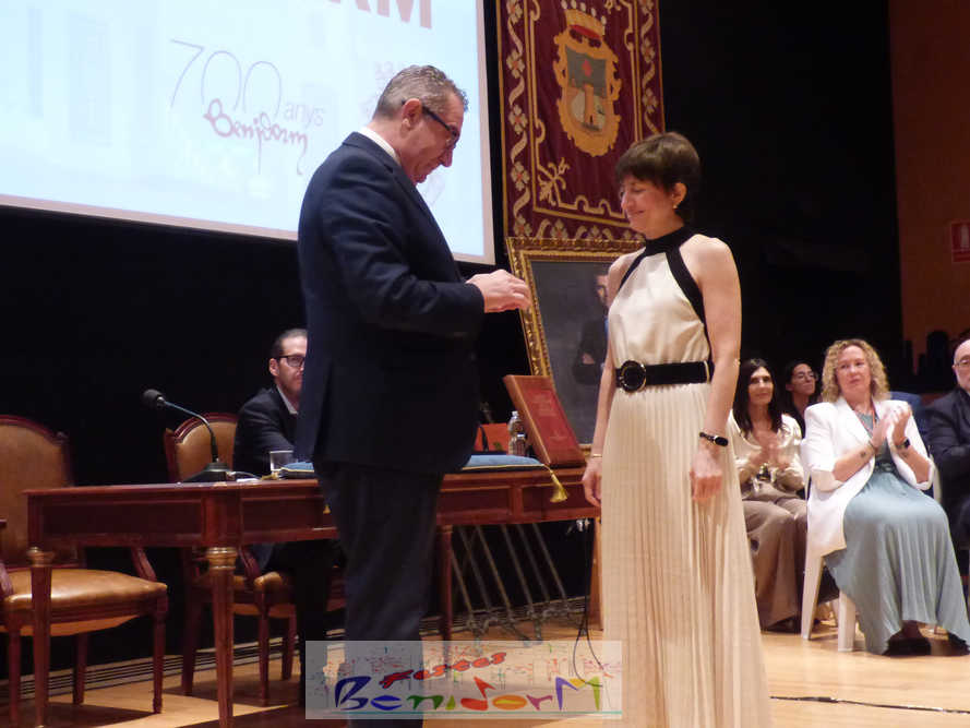 Se ha definido como “una benidormera ilusionada que no deja de plantearse nuevos retos cada día” y después ha realizado un repaso a su vinculación con la música y la cultura y los momentos que han definido su persona. Precisamente estudiando solfeo, piano y clarinete conoció a Salva, “a quien me uní para siempre”. De la música aprendió “a escuchar antes de intervenir y que cada papel es igual de importante”. Por eso ha reivindicado “más locales y medios para las sociedades musicales”.
