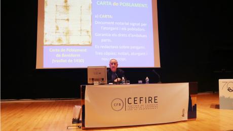 El alcalde dio la bienvenida a todos los asistentes y agradeció el impulso del CEFIRE, el Centro de Formación, Innovación y Recursos Educativos para la formación continua del profesorado, para “desde el ámbito académico, difundir el conocimiento sobre nuestra Carta de Poblament y sobre el 700 Aniversario que estos días celebramos”.