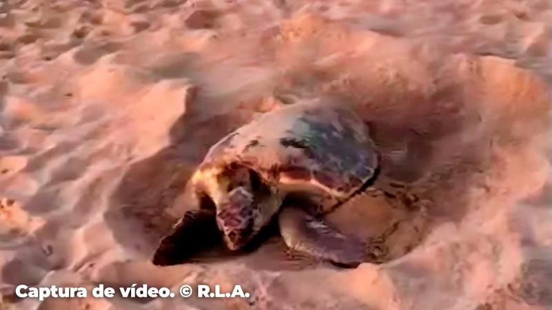 Una tortuga boba de gran tamaño ha desovado esta mañana en la playa de Poniente de Benidorm. Este acontecimiento se ha producido a primera hora de la mañana y de él han sido testigos varias personas que en eso momento se encontraban paseando por la playa y que han dado aviso a la Policía Local.